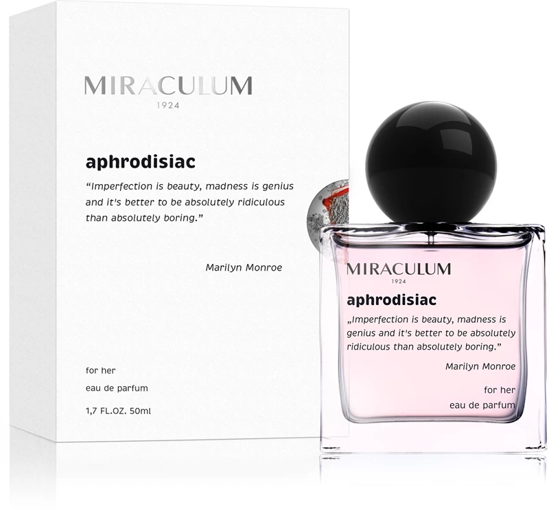 L’eau de parfum Miraculum Aphrodisiac vient caresser et réchauffer vos sens comme un agréable pull en cachemire. Enveloppez-vous dans son parfum envoûtant dès que vous en avez envie.